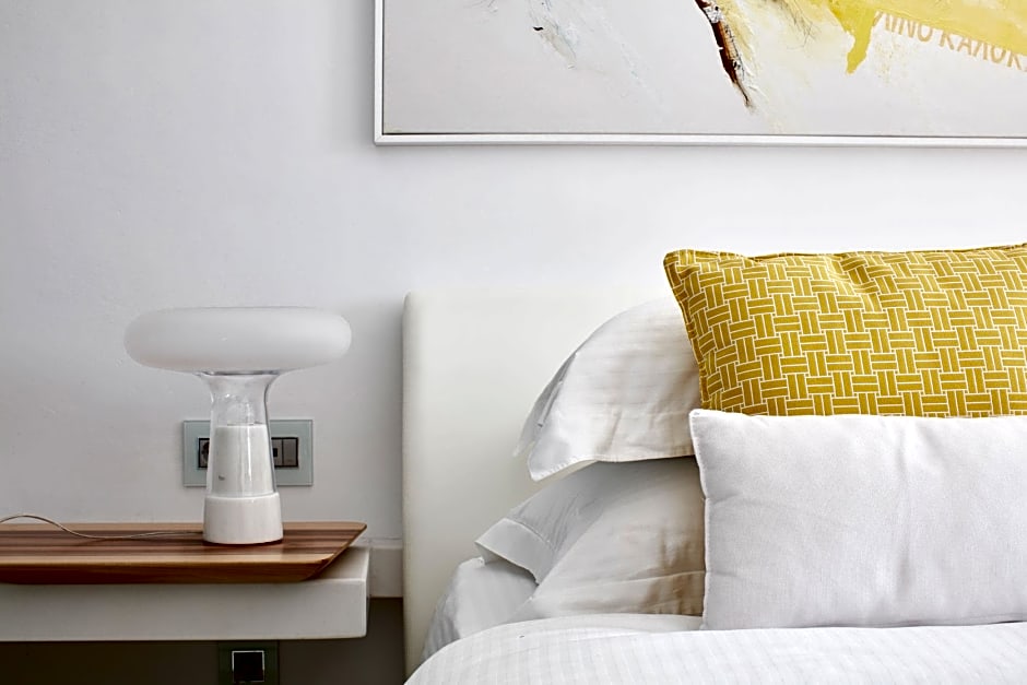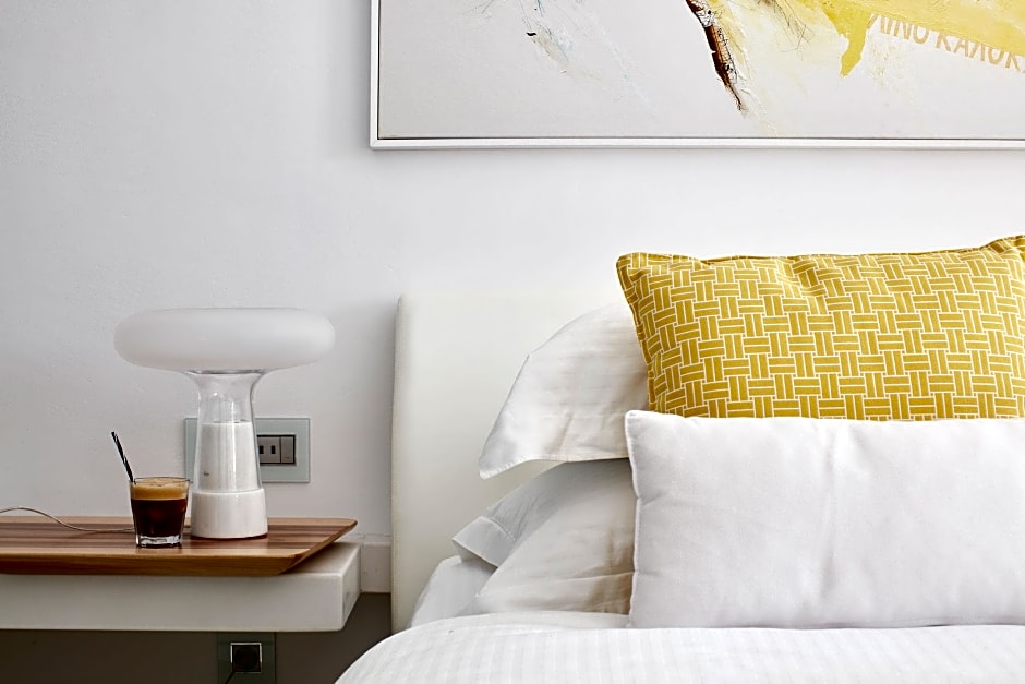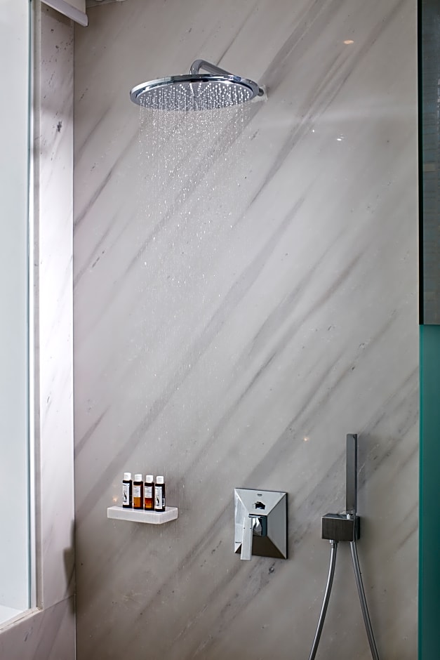 Relax in the spacious Thalassa Suite, perfect for a family of three adults and one child. Enjoy the luxury of a double bed, sofa bed, balcony, bathtub, and soundproofing, all in a 484 sq ft room.