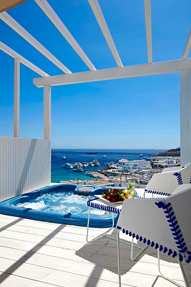 Indulge in the Thalassa Suite with a hot tub and garden view. This suite boasts a spacious 484 sqft, accommodating up to 3 adults with luxurious amenities like air conditioning and a private terrace.